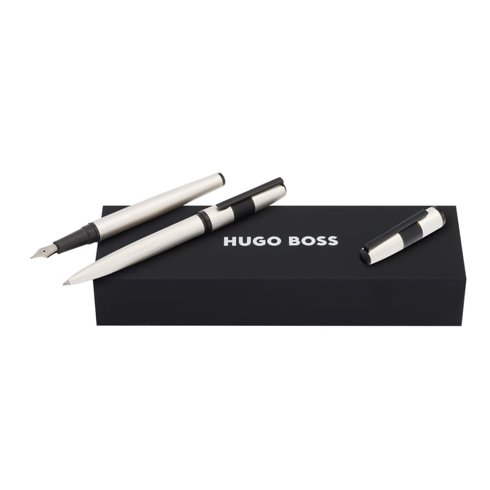 Стилен комплект от писалка и химикалка от серията Grid на Hugo Boss.