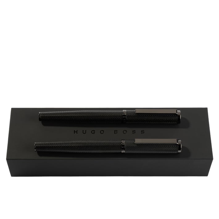 Стилен комплект от писалка и ролер от серията Formation Herringbone на Hugo Boss.