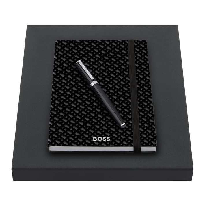Стилен комплект от тефтер Monogram и ролер от серията Gear Icon на Hugo Boss.