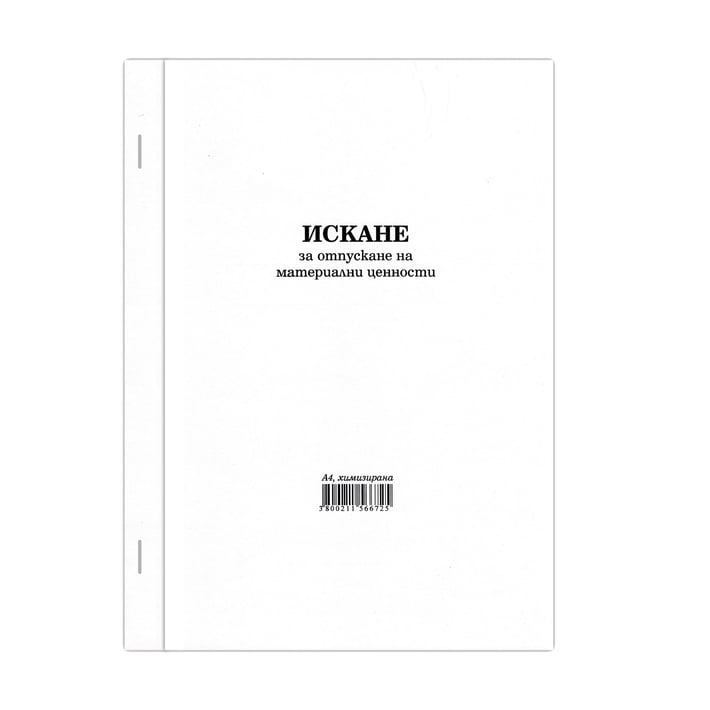 Искане за отпускане на материални ценности, голямо, химизирано, 100 листа
