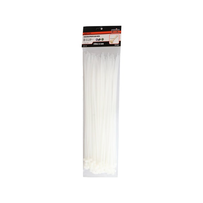 Кабелни връзки, 300 х 3.6 mm, бели, 100 броя