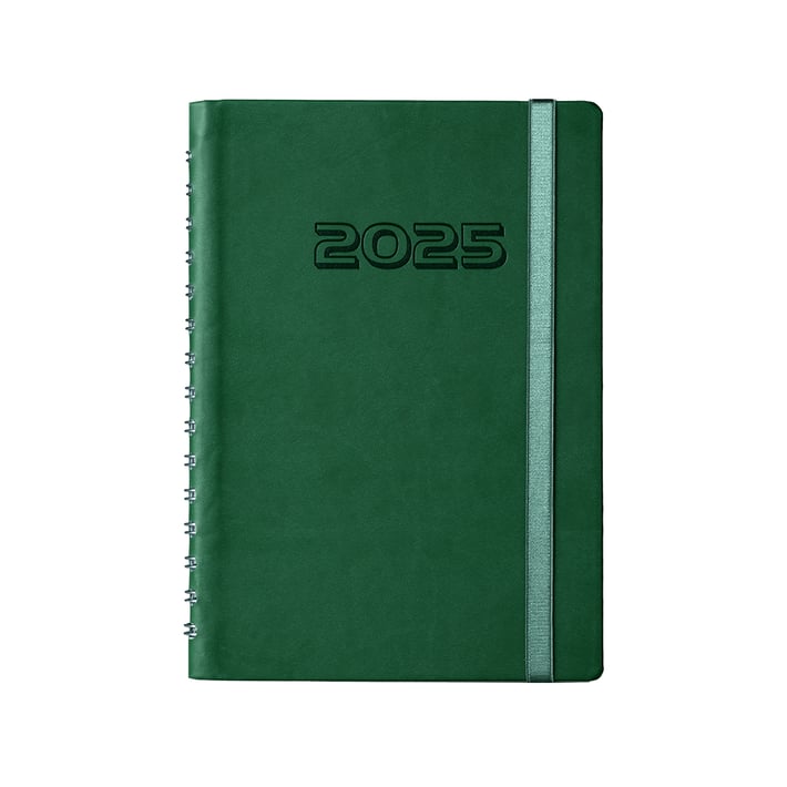 Календар-бележник, А5, с дати, със спирала и ластик, луксозен, зелен