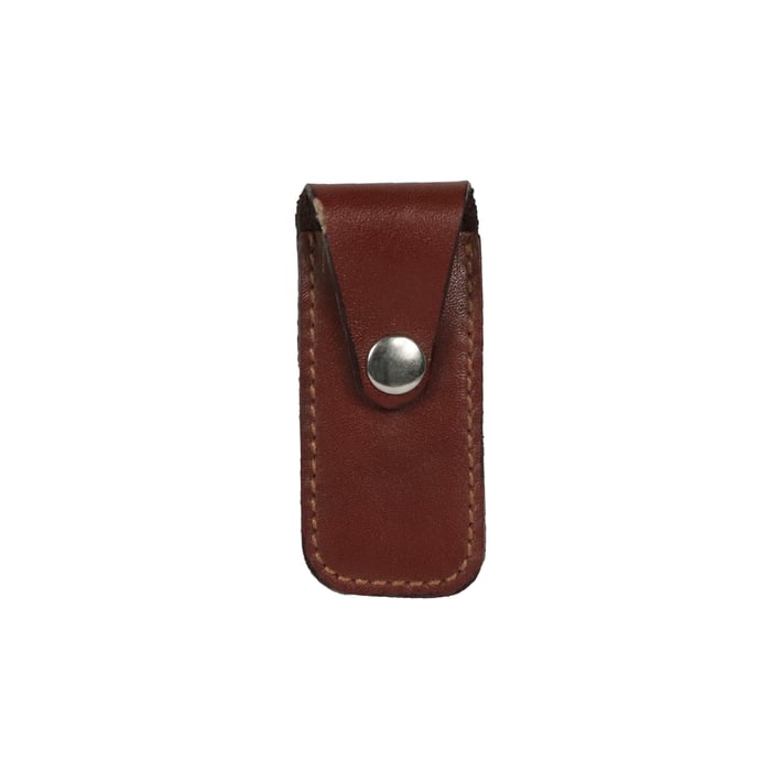 Добавете допълнителна защита и удобство при носене на любимото си джобно ножче с този висококачествен кожен калъф. Изработен от здрава кожа в класически кафяв цвят, той съчетава елегантна визия и издръжливост във времето. Компактната дължина от 70 mm го прави подходящ за носене в джоб или прикрепване към колан, а металното копче гарантира сигурно затваряне.