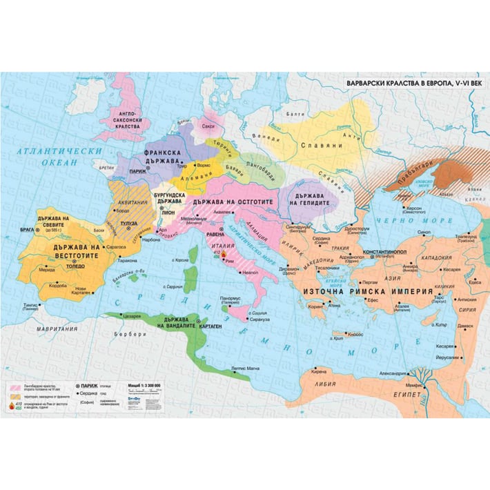 Карта Варварски кралства в Европа V–VI век