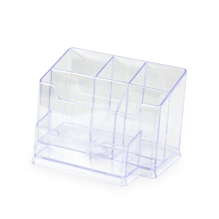 • Органайзерът за бюро е с отделение за листчета, поствка за тиксо, отделение за визитки, химикалки, моливи, гумички и други.
