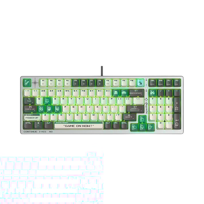 • Основната гейминг зона е оборудвана с висококачествени PBT клавиши, които гарантират дълъг живот, устойчивост на износване и по-бързо възстановяване при натиск. Пълното anti-ghosting покритие и full key rollover осигуряват точно регистриране на всяка команда, дори при едновременно натискане на множество клавиши.