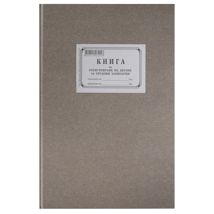 Книга за регистриране на актове за трудова злопулука, 100 листа