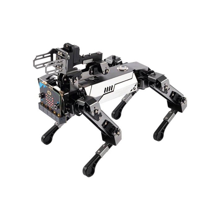 Elecfreaks XGO Robot Dog е програмиращ се четирикрак робот-куче, специално разработен за образование в областта на роботика, програмиране и изкуствен интелект за тийнейджъри и ученици.Този дидактичен робот се захранва от micro:bit (не е включен в комплекта) и позволява графично програмиране чрез MakeCode, което е подходящо и за начинаещи.15 степени на свобода (15 DOF) осигуряват реалистично движение, а роботът може да изпълнява различни жестове и интеракции, подобни на истинско домашно куче.Комплектът включва роботизирана ръка с щипки, която може да хваща и носи предмети, както и механична структура с четири стабилни крака за устойчиви движения. Тези функции правят XGO не само забавен, но и отличен инструмент за практическо обучение по механика, електроника, програмиране и AI, като подготвя учениците за бъдещето на технологиите.Стабилна конструкция със здрава основа и STEM приложение в образованието.