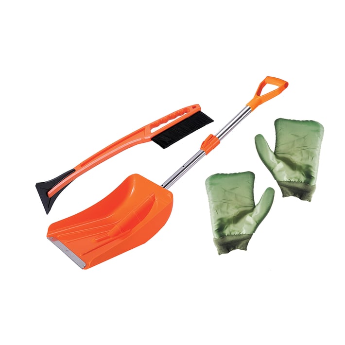 Зимен комплект започистване на сняг и лед, който се състои от лопата за сняг, стъргалка за лед с четка, ръкавици 2 броя.