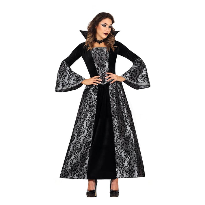 Елегантен костюм в черен цвят, създаден специално за дами, които търсят стилен и мистериозен вид за Хелоуин, маскарад или тематично парти. Комплектът включва рокля с изчистен силует и готически елементи. Изработен е от леки и удобни материали, подходящи за продължително носене. Размерът отговаря на европейска номерация S (36–38).