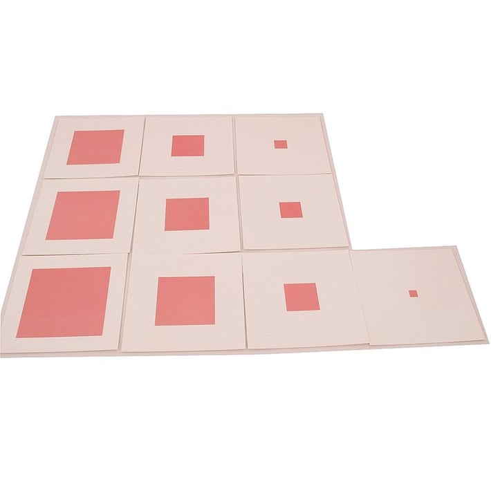 Продуктът представлява комплект от 10 карти с размер 14 х 14 cm. На всяка карта има нарисуван розов квадрат с размери на страната от 1 до 10 cm.