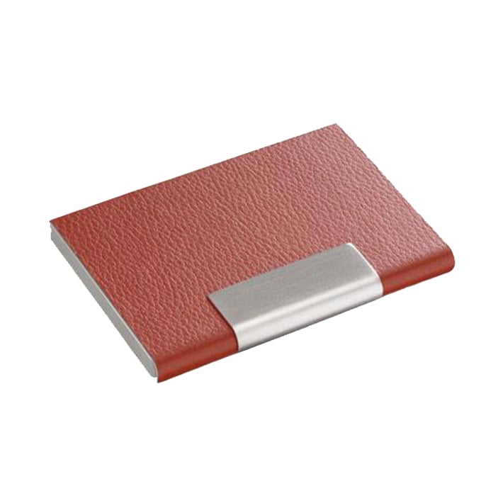 • Визитник, тип кутийка от метал и червена изкуствена кожа, с възможност за гравиране и надписване.