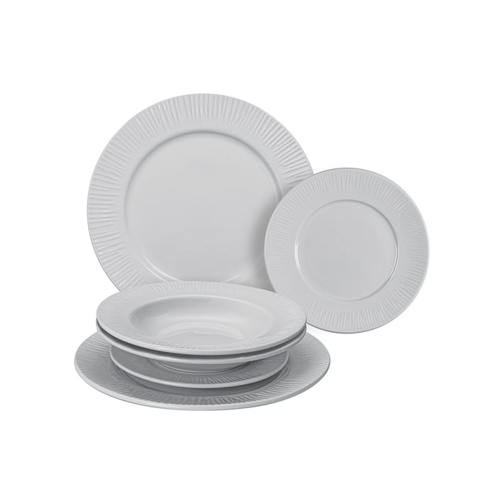 Комплект от 6 кръгли чинии, идеални за сервиране на основни ястия и предястия.