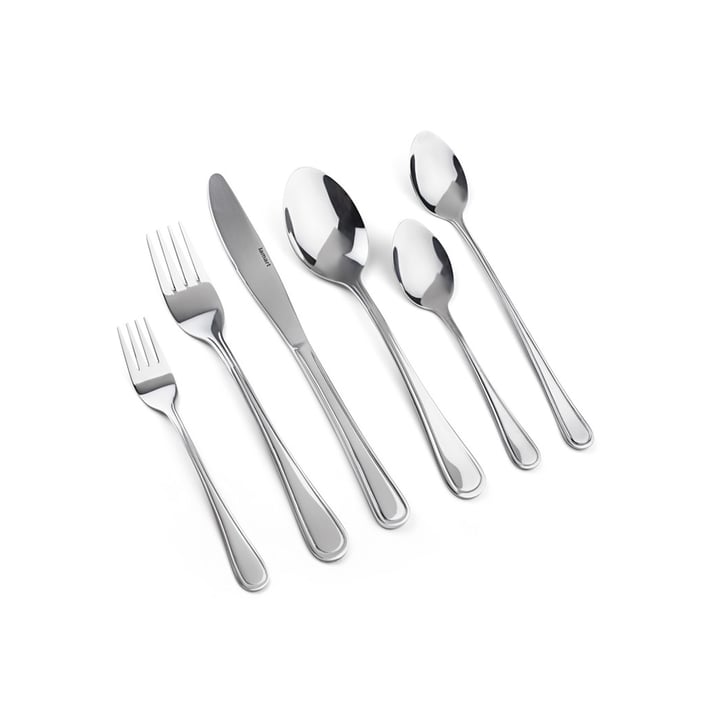 Комплект от 48 части, включващ ножове, вилици, лъжици и малки лъжички, идеални за сервиране на 12 души.