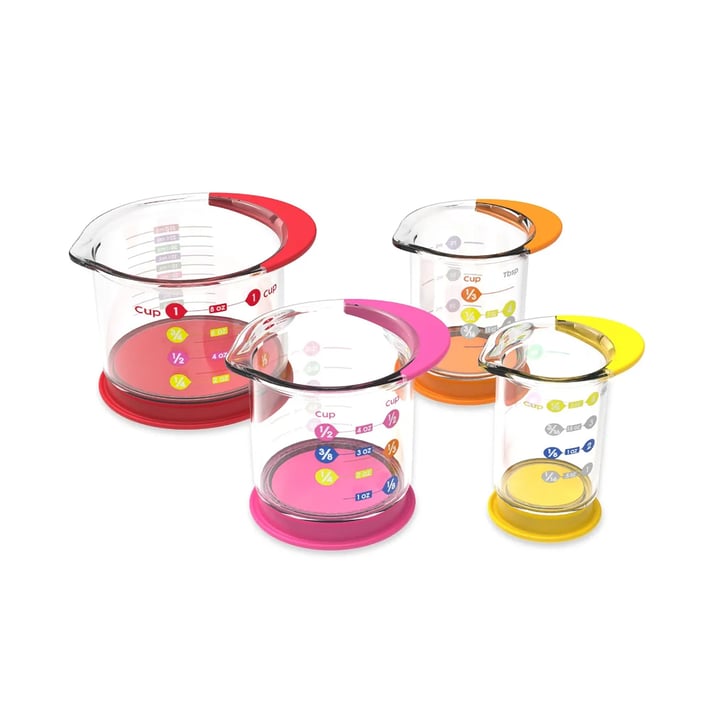 Чашите са безопасни за хранителни продукти, могат да се мият в съдомиялна машина и имат меки, лесни за хващане капаци с чучурчета за наливане и предпазители за разливане на дъното, които предотвратяват бъркотията и поддържат чашите стабилни.