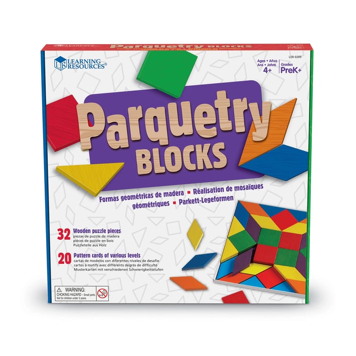 Събуди въображението и логиката с този образователен комплект от Learning Resources. Комплектът съдържа 32 дебели дървени геометрични блока (квадрати, триъгълници и ромбове) в шест цвята, които децата могат да подреждат върху включения работен поднос според 20 карти с модели или да създават свои собствени дизайни.Тази активност развива умения като симетрия, отражения, визуално мислене, пространствено съзнание и творческо експериментиране.Комплектът е подходящ за деца над 4 години и е чудесен както за домашна употреба, така и за детски градини и училища.