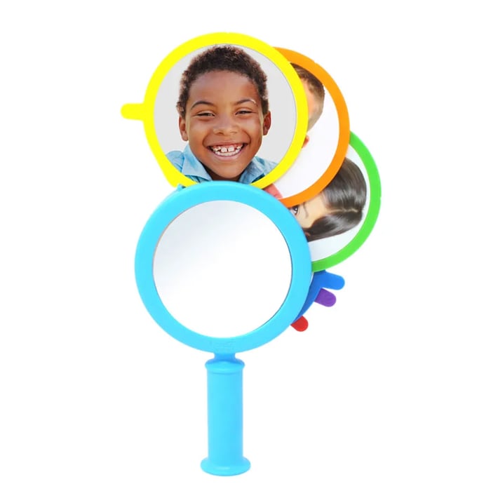 Огледалата са в ярки цветове и имат здрава, лесна за хващане дръжка.
