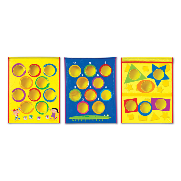 Подсилва уменията за изчисляване още в най-ранна детска възраст.Предоставя четири различни начина за игра: с цветове, числа, форми, свободна игра.Подходяща за извънкласни занимания и училищни забавления.Дъската се сгъва хоризонтално за съхранение, включва два големи джоба и дръжка за удобен пренос.Комплектът включва 12 топчета с цифри и дъска с четири страни, лесни за почистване. С включено ръководство.Размери на дъската: 60 x 50 cm.Възраст: 3 – 9 години.
