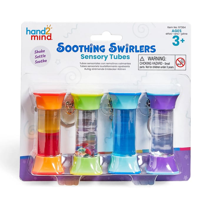 Тези компактни сензорни бутилки предлагат завладяващи визуални ефекти, които успокояват и фокусират вниманието на децата. Комплектът включва четири различни варианта, всеки със своя уникална текстура и движение.