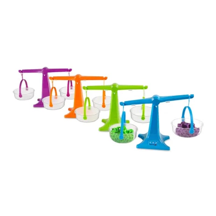 Забавен и нагледен начин за учене чрез практика! Този комплект от 4 броя образователни везни е идеален за изследване на тегло, обем и еквивалентности в класната стая. Везните се сглобяват и разглобяват лесно само в три стъпки, а всички части се подреждат компактно една в друга за удобно съхранение.
