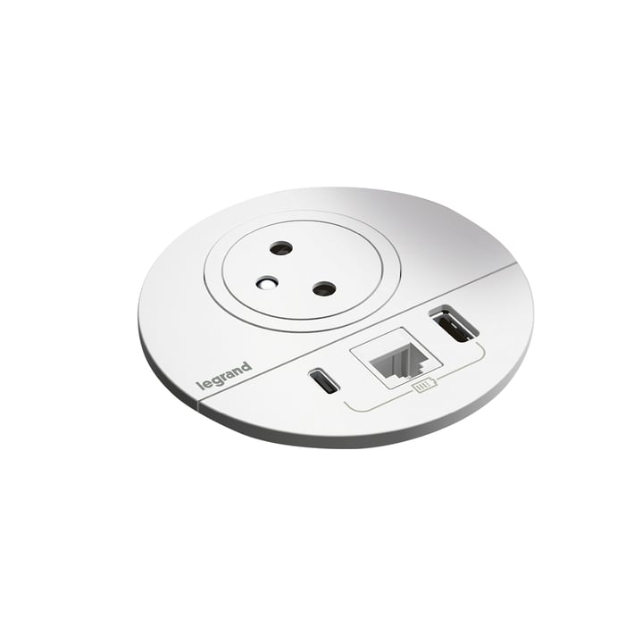 Модул за вграждане Legrand Incara Disq 80, с USB и RJ45, метален, 1 гнездо