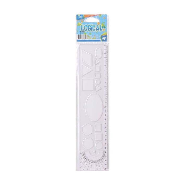 Прозрачна PVC линийка с шаблони за геометрични тела.