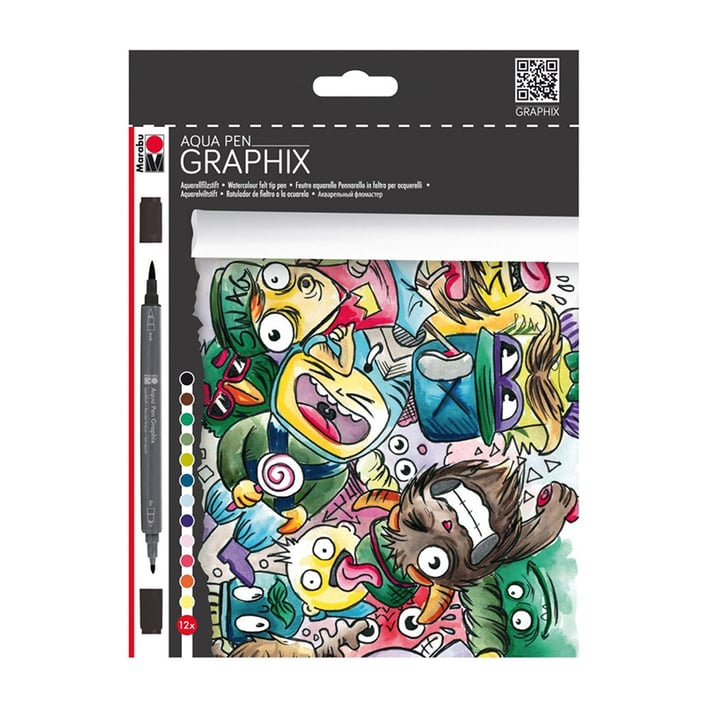 Marabu Акварелни маркери Aqua Pen, Mega Mash, 12 цвята