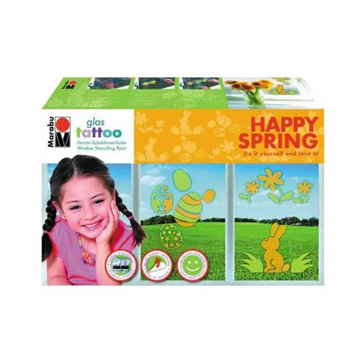 Придайте личен почерк на вашия дом с татуировките Happy Spring. Могат да се използват върху прозорци, огледала, порцелан или плочки.