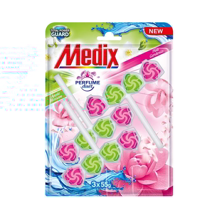 • Medix WC Perfume Duet е твърдо тоалетно блокче с модерна комбинация от двойка отличителни ухания.