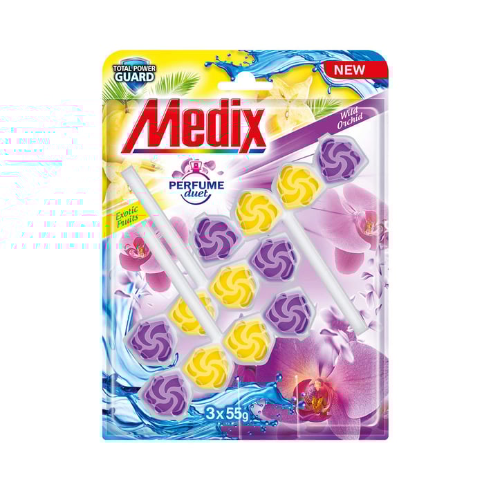 Ароматизатор за тоалетна Medix Perfume Duet Fruits & Orchid, 55 g, 3 броя