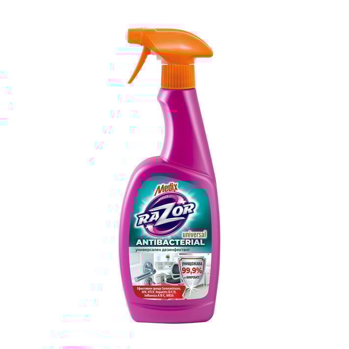 Medix Razor Antibacterial Universal Breeze е дезинфекциращ универсален препарат с бактерицидно и фунгицидно действие, който унищожава 99,9% от микробите.