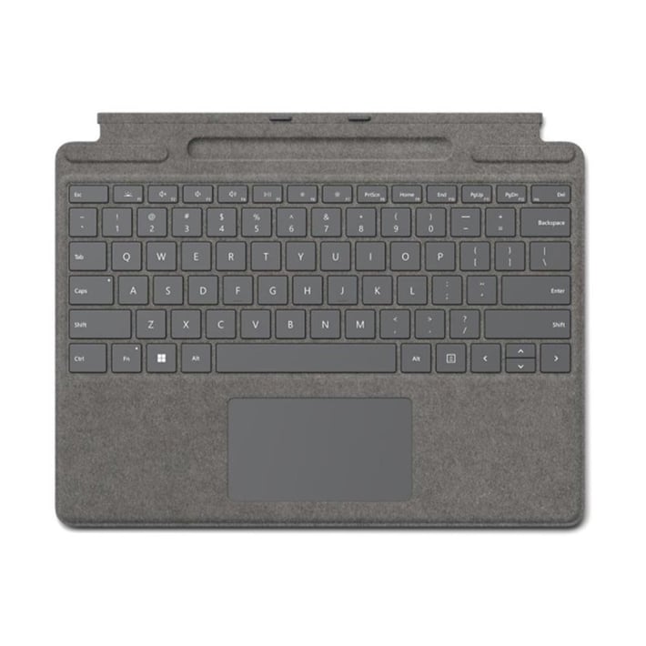 Добавете стил, функционалност и комфорт към своя Surface Pro с премиум клавиатура и писалка в едно. Изработена от луксозна Alcantara® материя, клавиатурата предлага изключително приятно усещане при писане и елегантна визия, която допълва дизайна на вашето устройство.С компактна, но пълноразмерна подредба на клавишите и голямо стъклено тъчпад поле, тя осигурява плавна, прецизна и безшумна работа – точно като при лаптоп. Slim Pen 2 се закрепва магнитно в предвидения слот, където се зарежда безжично.Съвместима е със Surface Pro 9, Surface Pro 8 и Surface Pro X.
