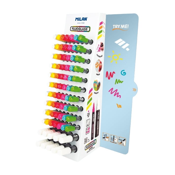 Milan Дисплей Fluoglass, с 96 маркера, асорти
