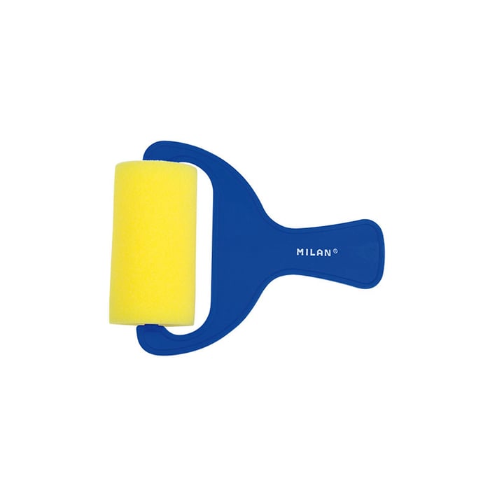 Валяк с къса пластмасова дръжка в син цвят.