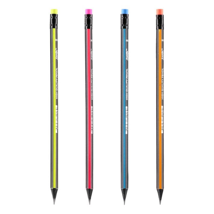 Триъгълен графитен молив със стандартна твърдост HB и гумичка в горната част. Моливът е изработен от висококачествено черно дърво, което позволява гладко и лесно подостряне. Графитът е устойчив на счупване и осигурява равномерна линия при писане и рисуване.