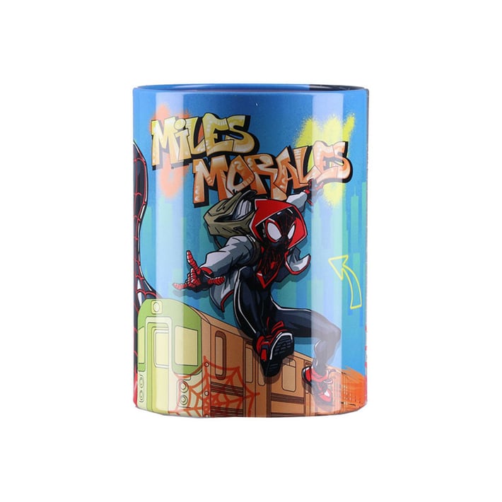 Метална чаша за моливи с мотиви на Spiderman, подходяща за организиране и съхранение на пишещи средства.