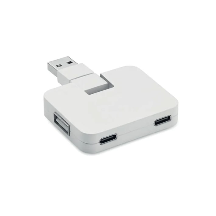 - More Than Gifts USB хъб, 4 порта 2 х USB Type-A, 2 х USB Type-C, вход Type-C/Type-A, бял