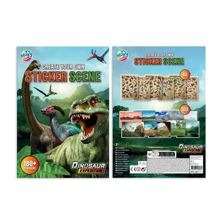 Занимателен, креативен комплект, с който детето ще се забавлява докато отлепва и залепва цветни стикери. Развива фината моторика, креативноста, въображението и творческото мислене.Книжка със стикери на динозаври във формат А4.Съдържа 6 листа със стикери - общо 180 броя.Подходяща е за деца над 3-годишна възраст.