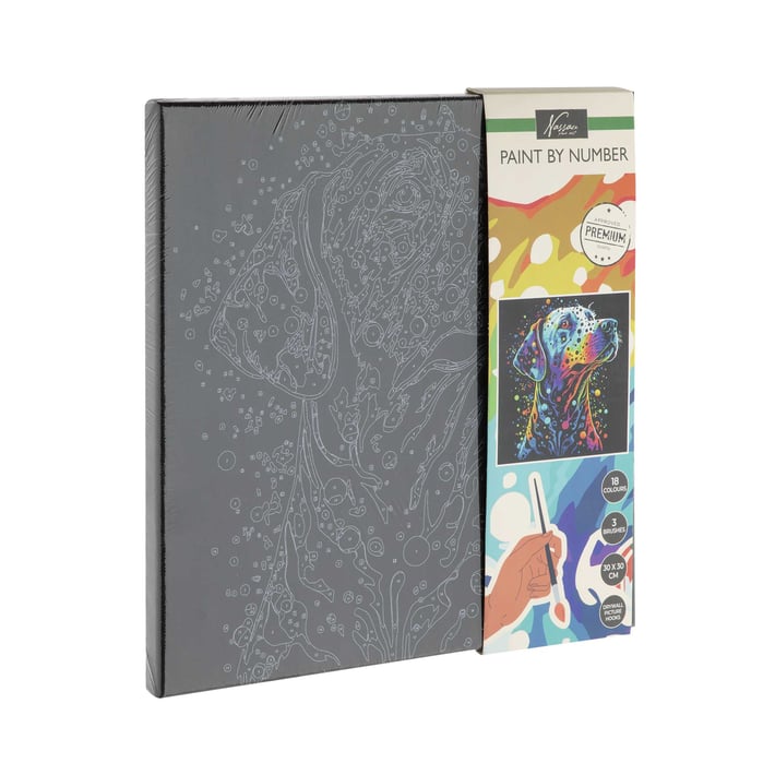 - платно за оцветяване по номера с изображение на куче, размери: 30 х 30 cm;