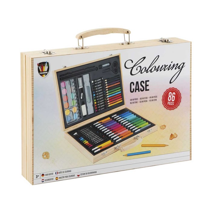 Творческият комплект за рисуване е предназначен за деца на възраст над 3 години и предлага разнообразен избор от материали за рисуване и живопис. В дървения куфар, който е лесно преносим благодарение на практичната дръжка, ще откриете 86 броя различни материали за рисуване. Комплектът е идеален за развиване на креативността и фината моторика не само в домашни условия, но и в движение. Той насърчава въображението и уменията за рисуване, което го прави чудесен избор за малките художници в началото на творческия им път.
