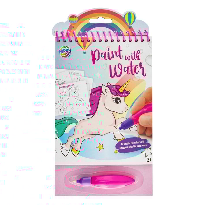 Подарете на детето си магическо творческо изживяване с комплекта за рисуване с вода от Moxy! Достатъчно е да напълните специалната химикалка с вода и цветовете върху картинките ще се „събудят“ пред очите му. След като водата изсъхне, картинките отново изсветляват и рисуването може да започне отначало - без бъркотия, без петна и без боя.Комплектът включва 5 тематични страници и удобна водна химикалка, които са събрани в компактна книжка — идеална за пътуване, разходка или време у дома. Подходящ за малки деца, тъй като развива фината моторика, концентрацията и творческото мислене.