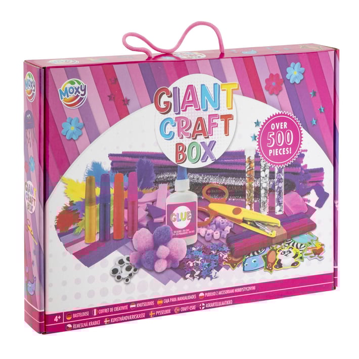 Включва над 500 броя разнообразни материали – пера, помпони, бляскави тръбички, цветна хартия, ножица, лепило, мъниста, декоративни очички и други.