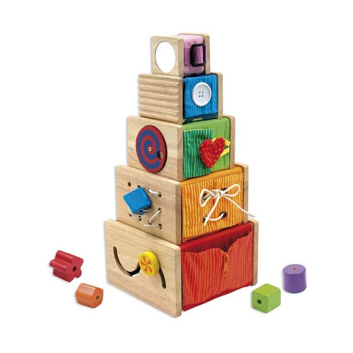 Включва 5 дървени кутии с различни размери и 5 дървени фигури за монтиране.