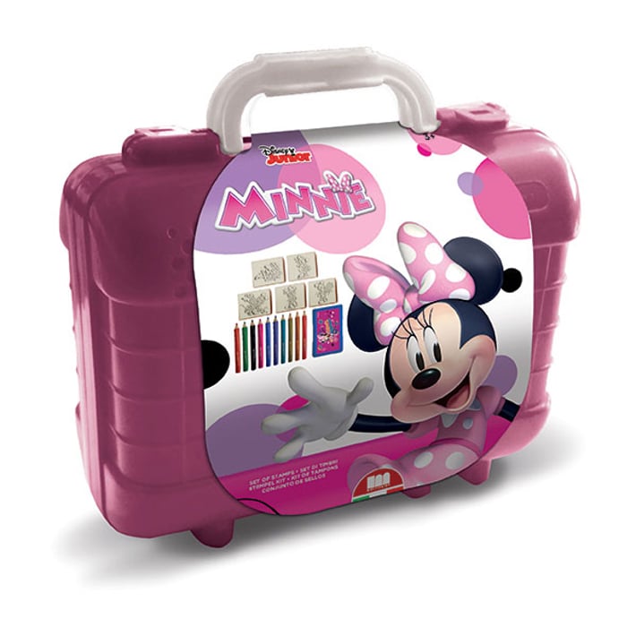 Никога повече няма да останете без вашите печати! Вземете любимото си занимание за оцветяване винаги със себе си и се наслаждавайте на играта, докато развивате важни умения за писане! Пластмасов куфар с двойна дръжка, съдържащ: