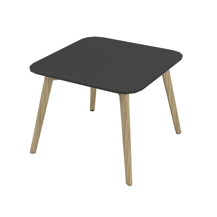 Ниска маса Narbutas Nova Wood, 700 x 700 x 480 mm, квадратен плот, MDF 26 mm, HPL черен плот, дървени крака