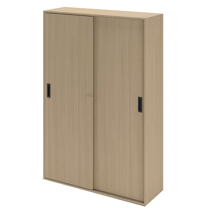 Шкаф Narbutas Choice, с плъзгащи се врати, 1200 x 400 x 1780 mm, ПДЧ 18 mm, меламин избелен дъб, черна дръжка