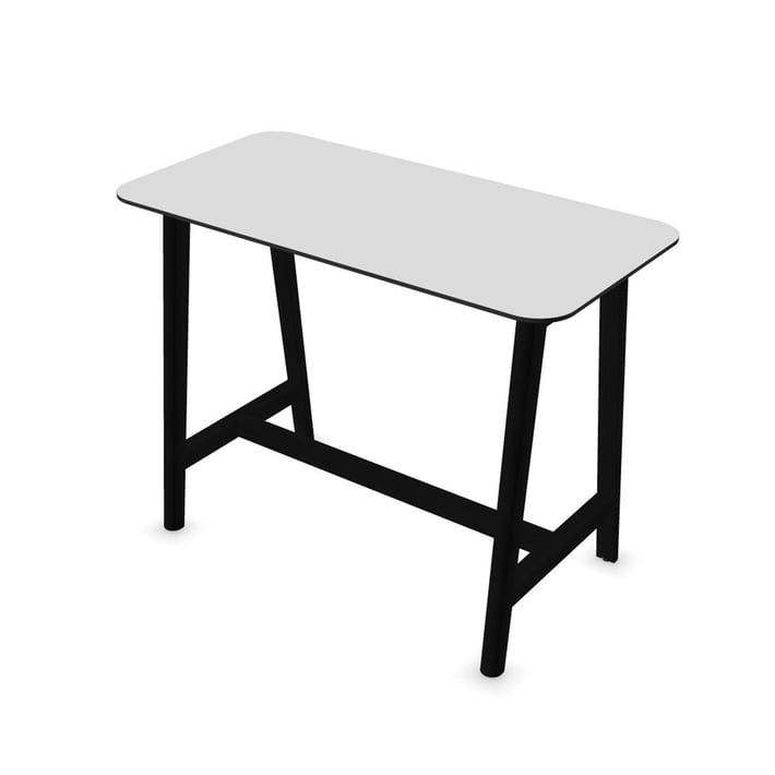 - Висока маса Narbutas Nova Wood, 1400 x 700 x 1050 mm, MDF 26 mm, HPL бял плот, черни дървени крака