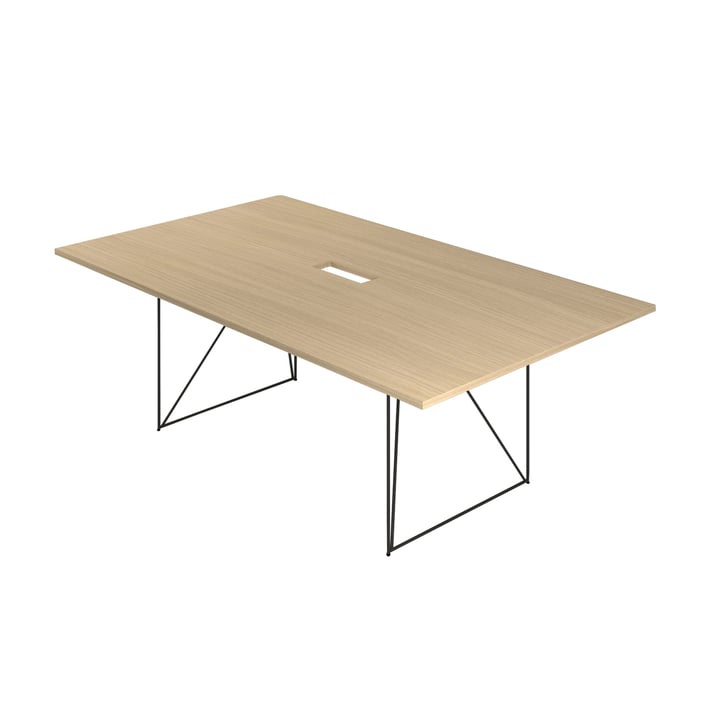 Заседателна маса Narbutas Air, 2200 x 1300 x 740 mm, правоъгълен плот, ПДЧ 25 mm, меламин избелен дъб, черен метал