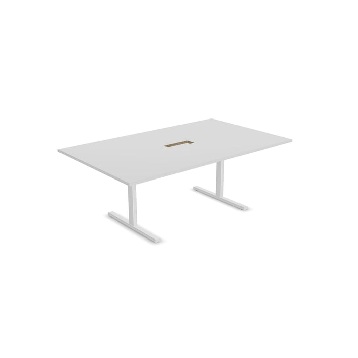 Заседателна маса Narbutas T-Easy, 2000 x 1200 x 740 mm, правоъгълен плот, ПДЧ 25 mm, бял меламин, бял метал, крак тип I