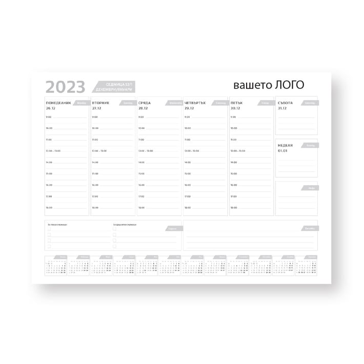 Настолен планер Basic, с персонализиран печат, A3, 53 листа, едностранен, едноцветен печат